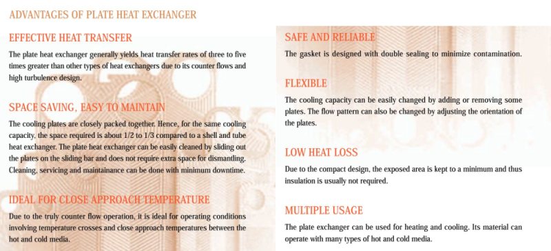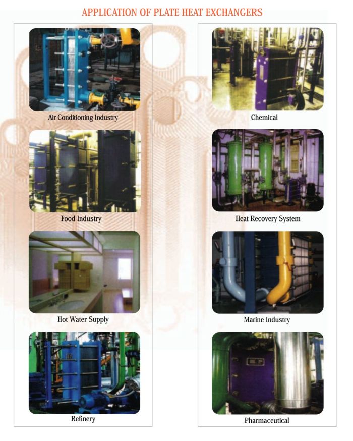The carefully designed corrugated surface of the plates provides a large heat transfer area while occupying a relatively smaller space. Plate heat exchangers are compact and flexible. The flexibility in plate arrangement ensures maximum turbulence and high heat transfer efficiency. Plate heat exchangers are used in general heating and cooling duties in Marine, Pharmaceuticals, Food, Medical, Process, Petro-chemical and general industries.
