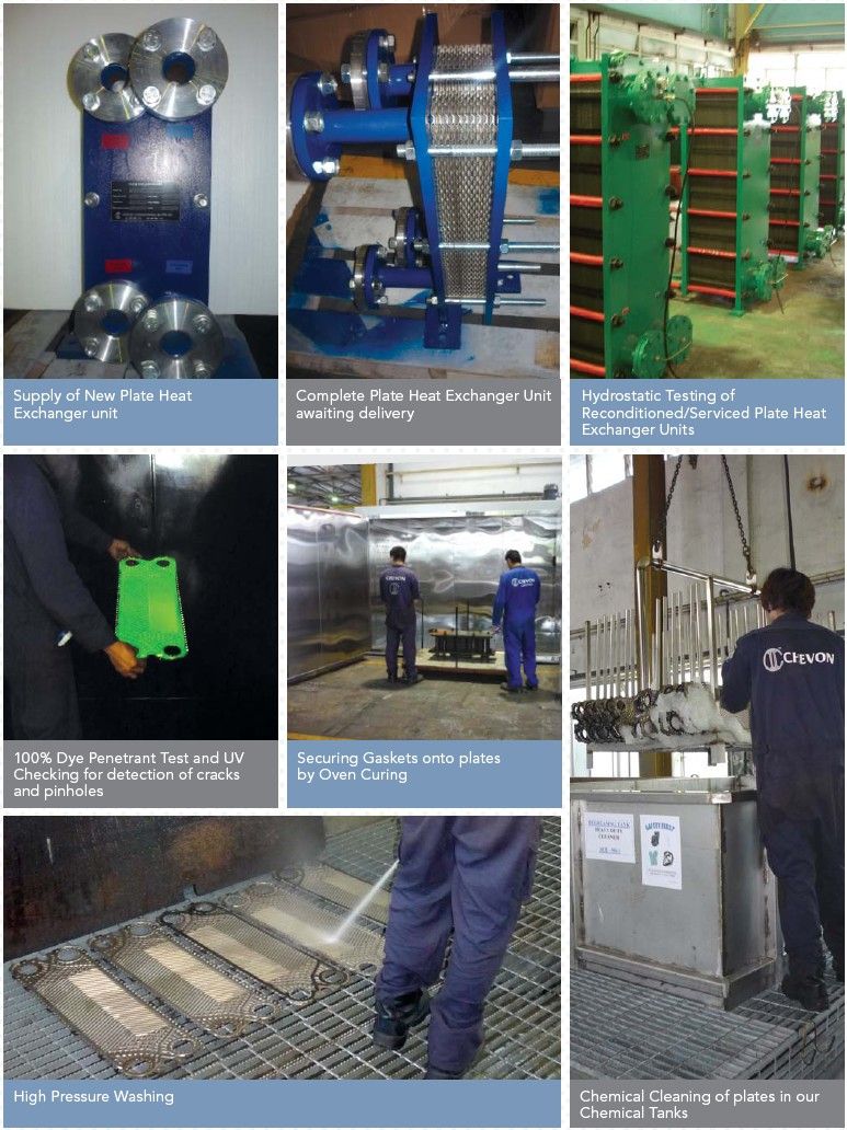 Plates and gaskets are analyzed to determine if servicing or replacement is necessary. We currently keep stock of approximately half a million dollars worth of common model gaskets of Major Makers e.g. Alfa Laval, APV, Tranter, SWEP, Hisaka, GEA, etc. Our efficient global network enables us to get reconditioned plates and new gaskets with minimal lead time. In addition, we can even supply new Plate Heat Exchangers according to required operating specifications in the shortest possible delivery lead time.